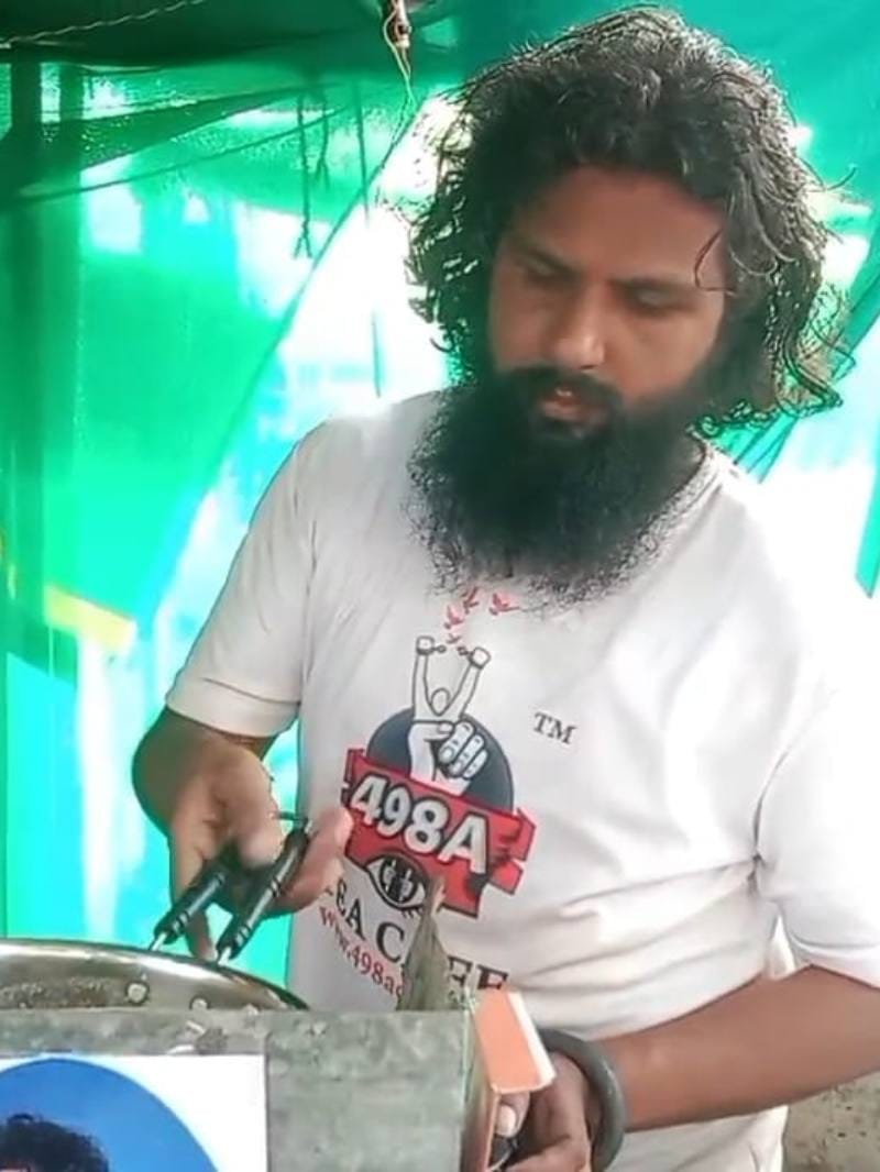 हाथों में हथकड़ी पहनकर चाय बना रहा यह शख्स कहीं न कहीं पत्नी की प्रताड़ना और दहेज के झूठे प्रकरण में न्याय मांगते दिख रहा है