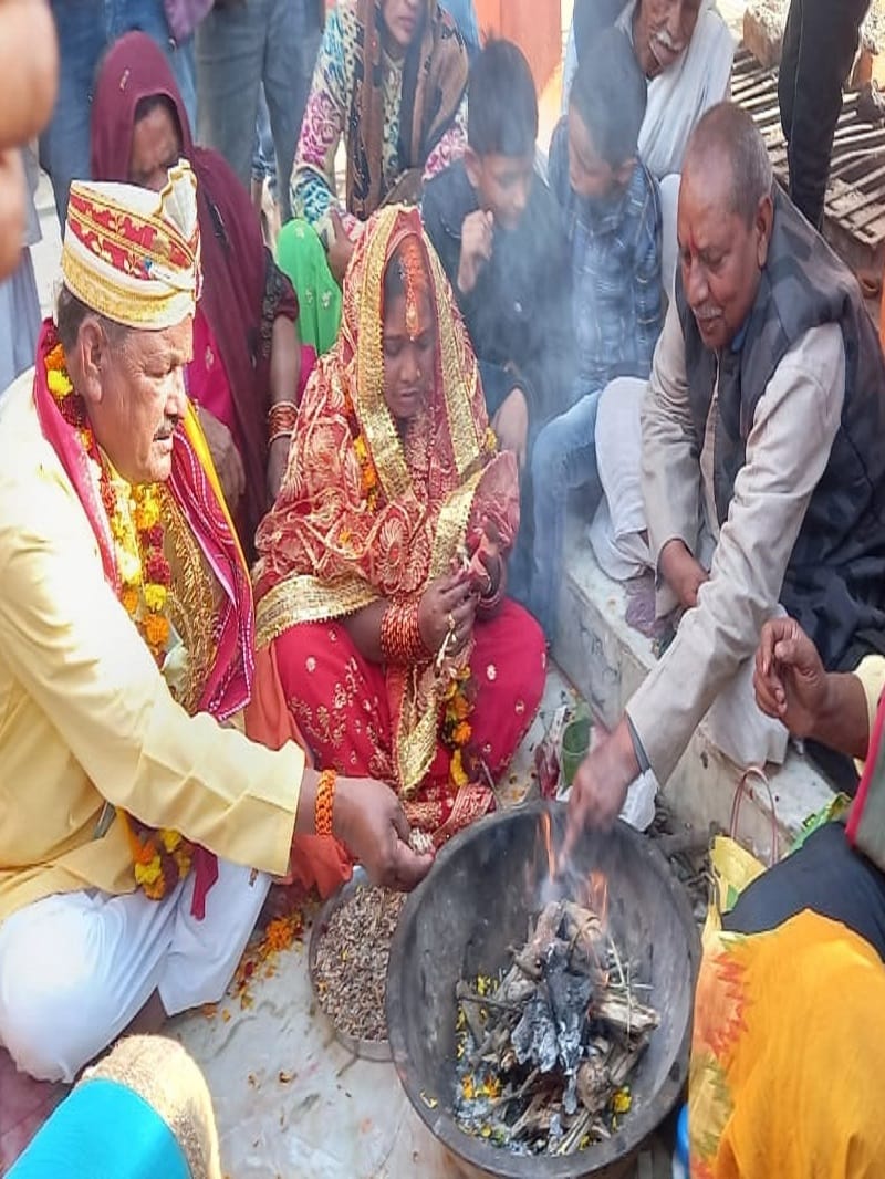 अयोध्या के मां कामाख्या धाम मंदिर में एक 65 साल के बुजुर्ग ने 23 साल की युवती से शादी रचाई। बाराबंकी के रहने वाला बुजुर्ग की पहले से हैं छह लड़कियां पत्नी के मौत के बाद अकेलापन दूर करने के लिए रचाई शादी लड़की और उसके घरवालों की रजामंदी से हुई शादी बुजुर्ग ने अपनी दूसरी शादी में जमकर किया डांस बुजुर्ग द्वारा अपने घर पर प्रीति भोज भी आयोजित किया गया बुजुर्ग की यह शादी चर्चा का विषय बनी 65 के बुजुर्ग को मिली 23 की दुल्हनिया