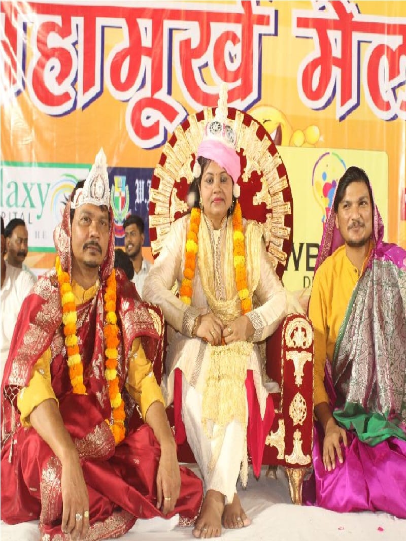 महामूर्ख मेला में अब तक न जाने कितने ही विशिष्ट जन बेमेल विवाह के बंधन में बंध चुके हैं, इसमें पुरुष दुल्हन और महिला दूल्हा बनती है।
