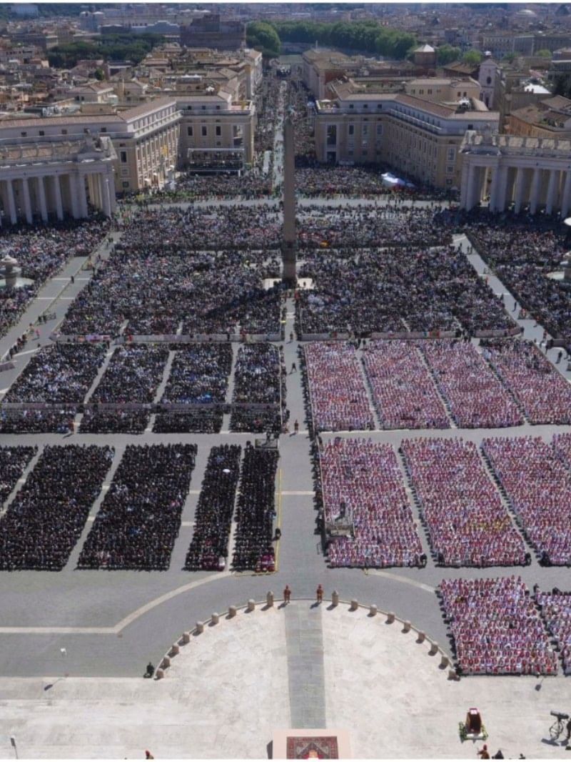 पोप फ्रांसिस का अंतिम संस्कार वेटिकन सिटी में सेंट पीटर्स स्क्वायर में आयोजित किया गया था, जिसमें 150 से अधिक विदेशी प्रतिनिधि और दो लाख से अधिक लोग शामिल हुए थे