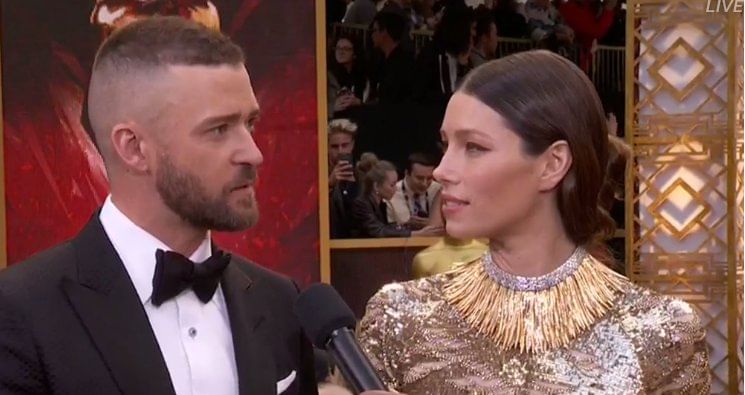 - ऑस्कर के रेड कार्पेट जस्टिन टिंबलेकर, पत्नी जेसिका बेल के साथ