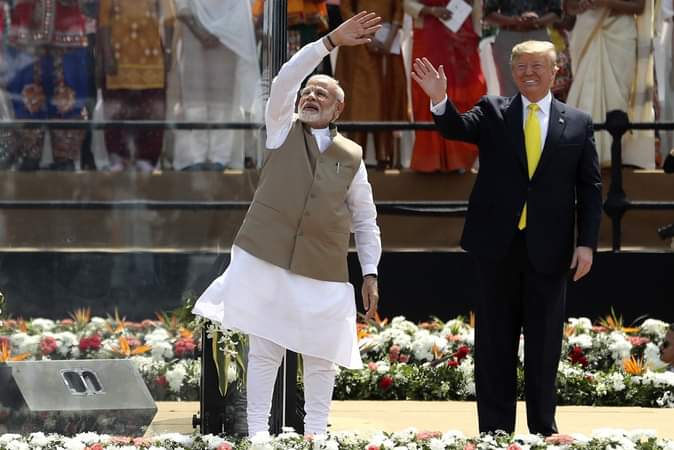 पृष्ठभूमि में मोदी कह रहे हैं, ‘उन्हें किसी परिचय की जरूरत नहीं है। उनका नाम लगभग हर बात में आता है। अमेरिकी राष्ट्रपति, श्रीमान डोनाल्ड ट्रंप...’ फिर यह वीडियो दोनों नेताओं के साथ अमेरिका की प्रथम महिला मेलानिया ट्रंप को इस साल फरवरी के नमस्ते ट्रंप कार्यक्रम के दौरान अमेरिका में विशाल भीड़ का अभिवादन करने वाले दृश्य को दिखाता है।