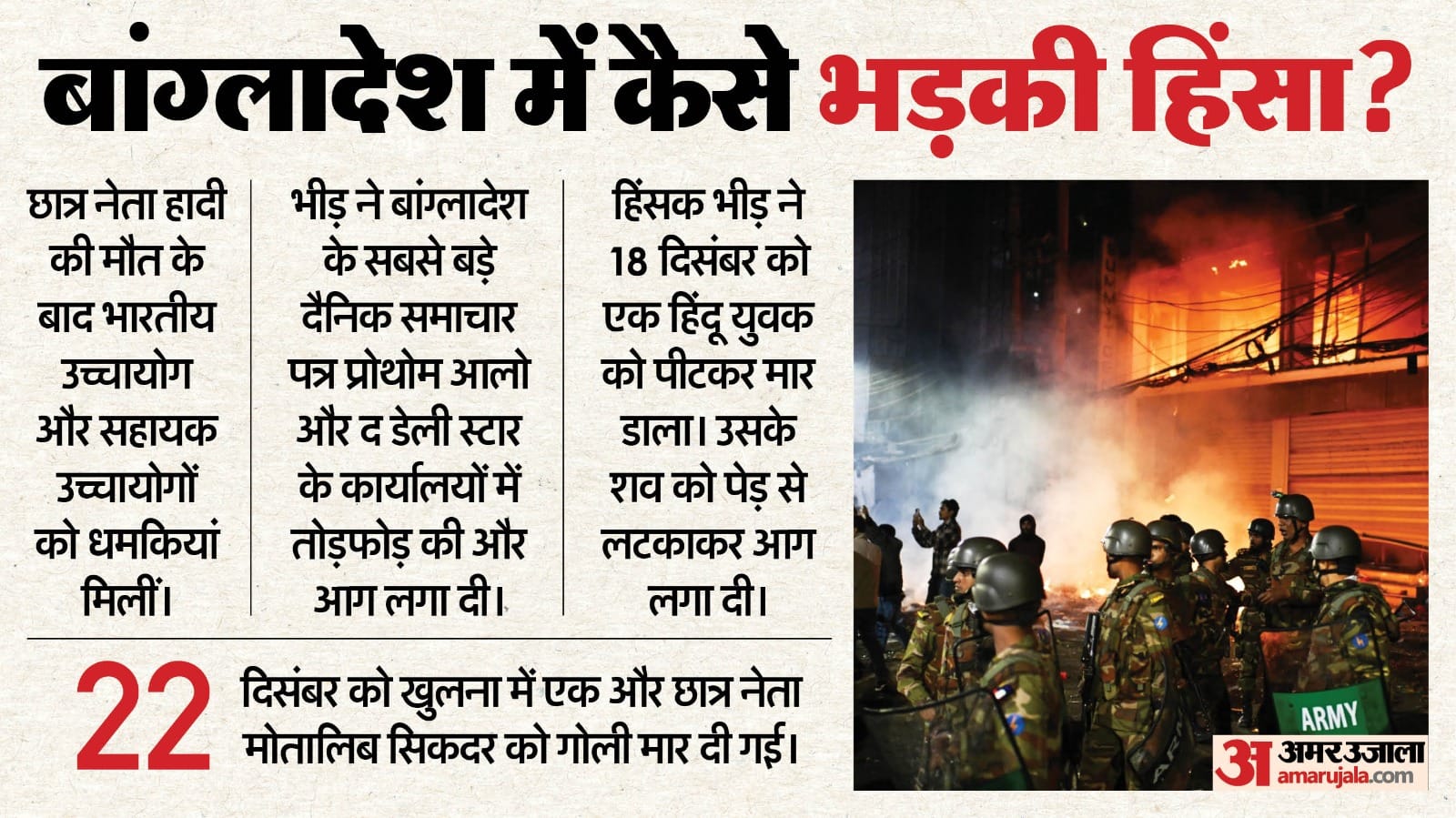 बांग्लादेश में उस्मान हादी की मौत के बाद हालात कैसे बिगड़े हैं? हादी को मारने वालों के बारे में अब तक क्या जानकारी सामने आई है? यह घटनाएं कैसे बांग्लादेश में चुनावी प्रक्रिया को प्रभावित कर रही हैं? भारत अपने पड़ोसी मुल्क को लेकर क्यों चिंतित है और इस पूरी स्थिति के क्या मायने हैं? आइये जानते हैं...