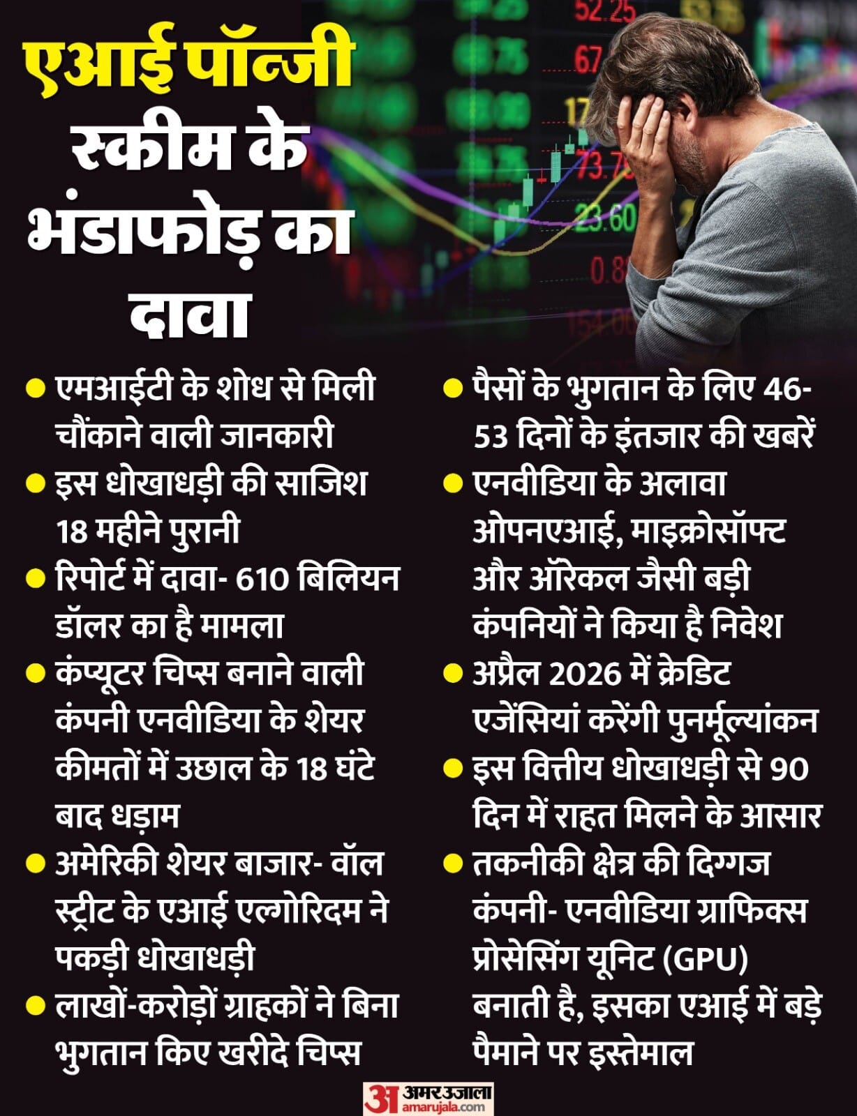 एक रिपोर्ट में मशीन इंटेलिजेंस से अरबों के फर्जीवाड़े को पकड़ने का दावा किया गया है। इस मामले से एनवीडिया, माइक्रोसॉफ्ट और ओपनएआई जैसी दिग्गज कंपनियों के नाम जुड़े हैं। दावा किया जा रहा है कि 610 बिलियन अमेरिकी डॉलर की ये धोखाधड़ी एआई पॉन्जी स्कीम है और शेयर बाजार में अरबों का घपला हुआ है। जानिए क्या है पूरा मामला