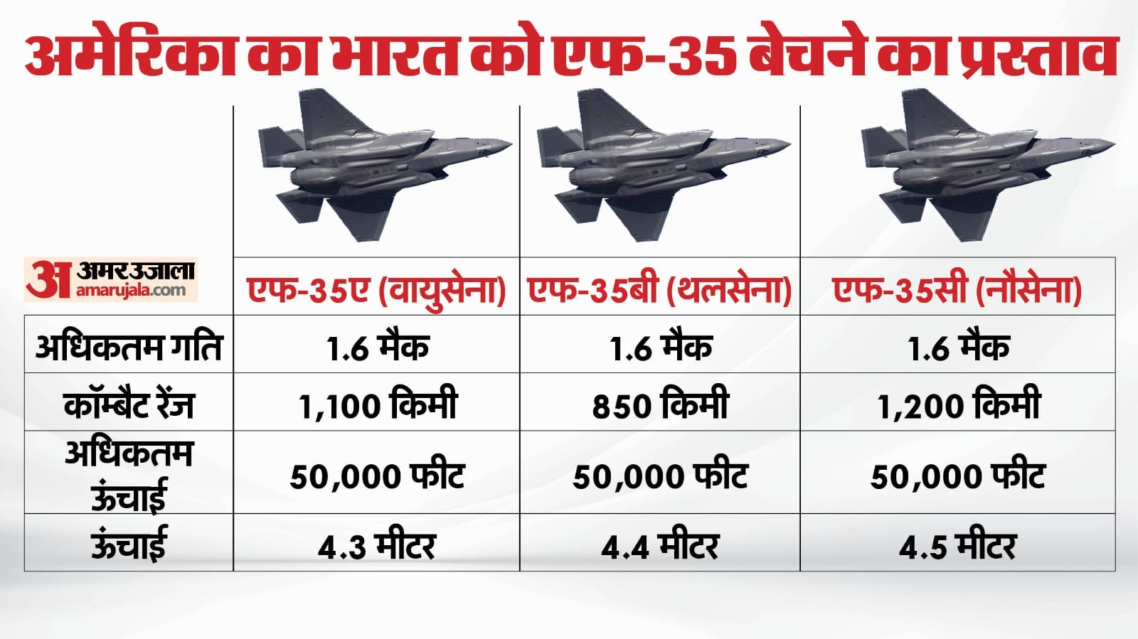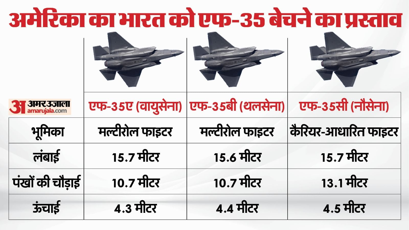 - एफ-35 का अगला वर्जन एफ-35ए अगस्त 2016 में अमेरिकी वायुसेना को सौंपा गया। इसमें एफ-35बी के मुकाबले कुछ अहम बदलाव किए गए थे। वहीं, अमेरिकी नौसेना को फरवरी 2019 में एफ-35सी दिया गया। इन तीनों वर्जन को थलसेना, वायुसेना और नौसेना के अभियानों के हिसाब से अलग-अलग तैयार किया गया।