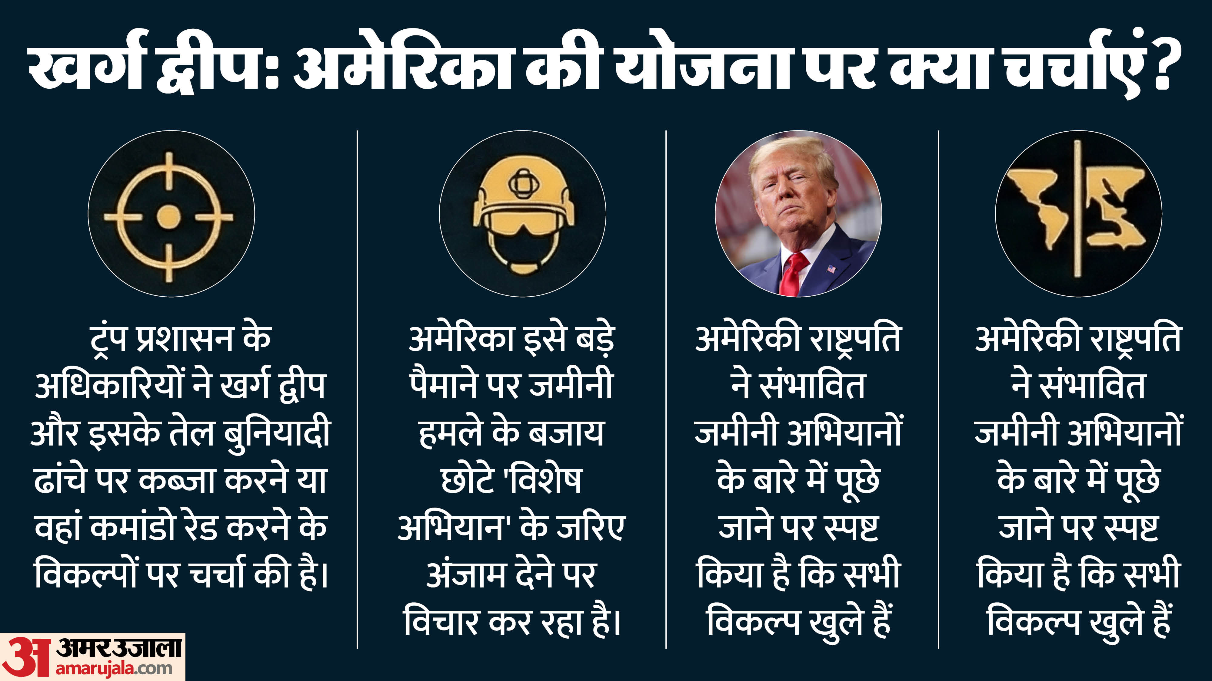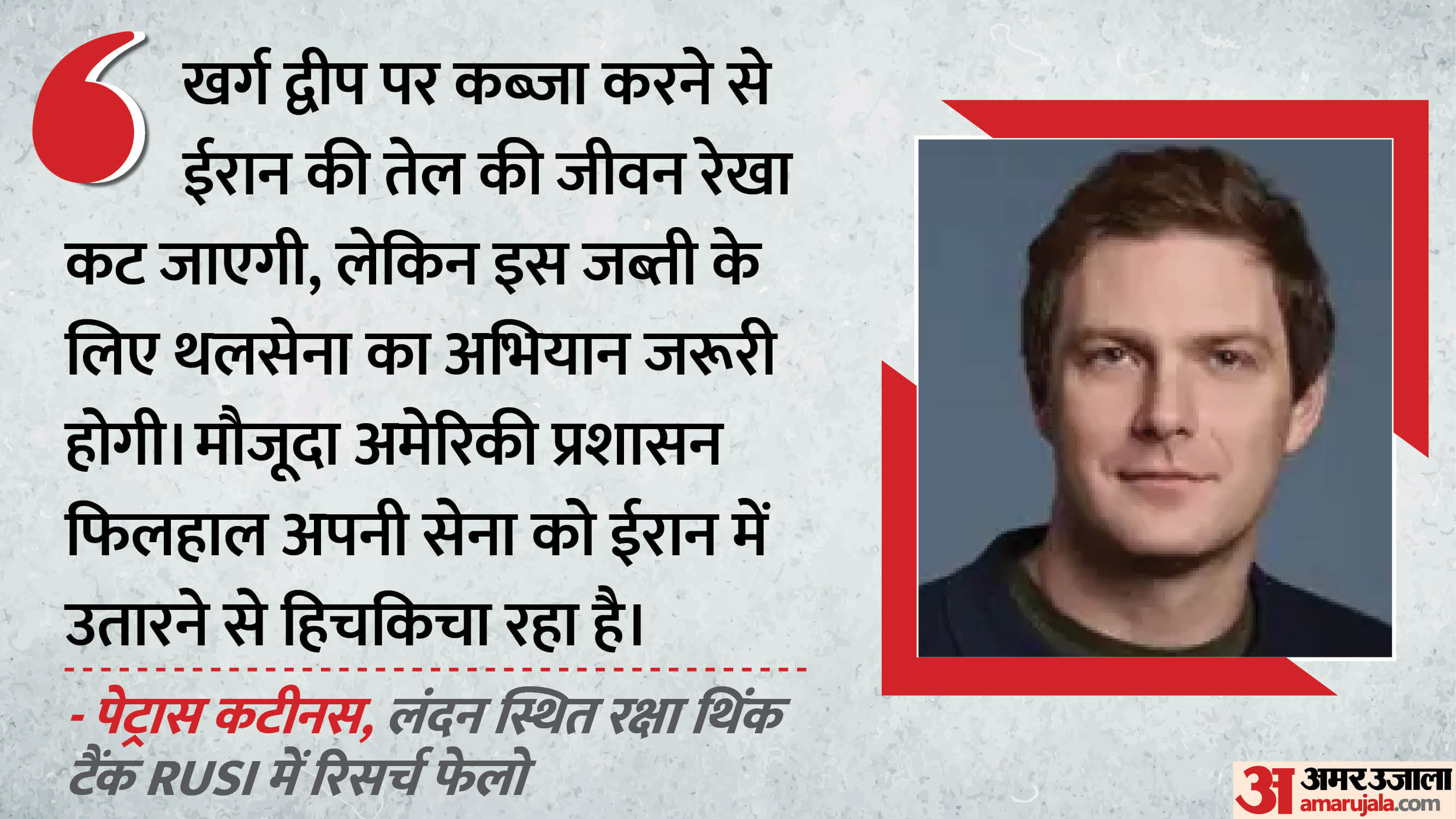 जमीनी सेना उतारने का जोखिम: हालिया समय में ऐसी भी रिपोर्ट्स आई हैं, जिनमें कहा गया है कि डोनाल्ड ट्रंप इस द्वीप पर कब्जा करने के लिए सैनिकों को उतार सकते हैं। हालांकि, सैन्य विश्लेषकों का कहना है कि इस द्वीप पर सुरक्षित तरीके से कब्जा करना मुश्किल है, क्योंकि अमेरिकी सेना का मुकाबला ईरानी सेना से सीधे तौर पर होगा। इस तरह आमने-सामने के सैन्य युद्ध को शुरू करने से अमेरिकी प्रशासन फिलहाल हिचकिचा रहा है। खासकर पश्चिम एशिया में उसके पुराने अभियानों को देखते हुए।