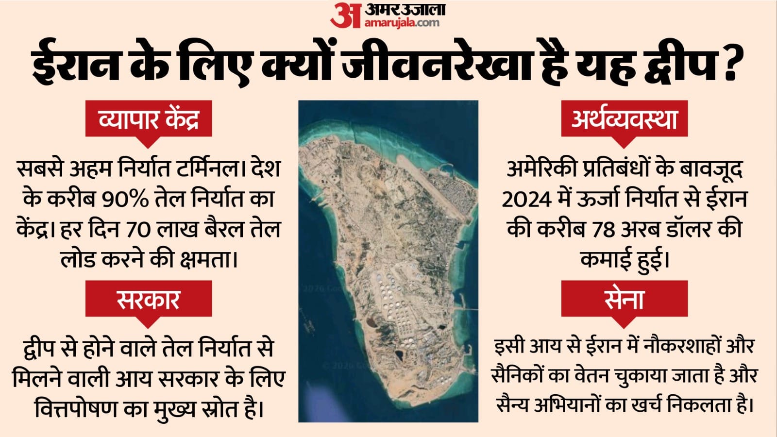ऐसे में यह जानना अहम है कि आखिर यह खर्ग द्वीप क्या है, जिस पर अब तक युद्ध के दौरान एक बार भी हमला नहीं हुआ है? इस द्वीप का इतिहास क्या है? कैसे यह द्वीप ईरान की शक्ति का केंद्र बना हुआ है? इसका चीन से क्या कनेक्शन है? इस्राइल-अमेरिका की तरफ से इस पर हमला न करने की क्या वजह है? अगर इस द्वीप पर किसी तरह का वार किया जाता है तो इसका वैश्विक स्तर पर क्या असर हो सकता है? आइये जानते हैं...