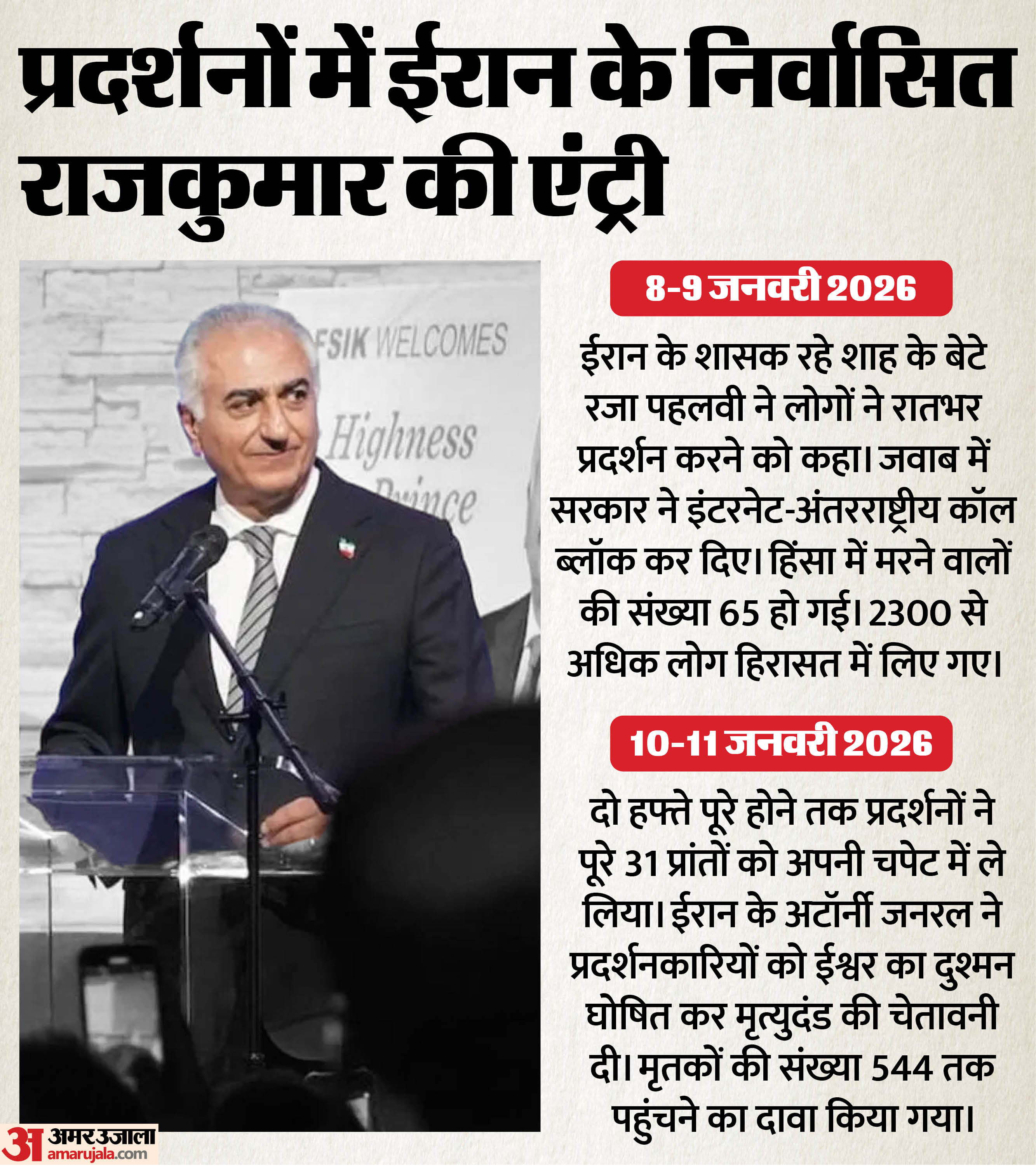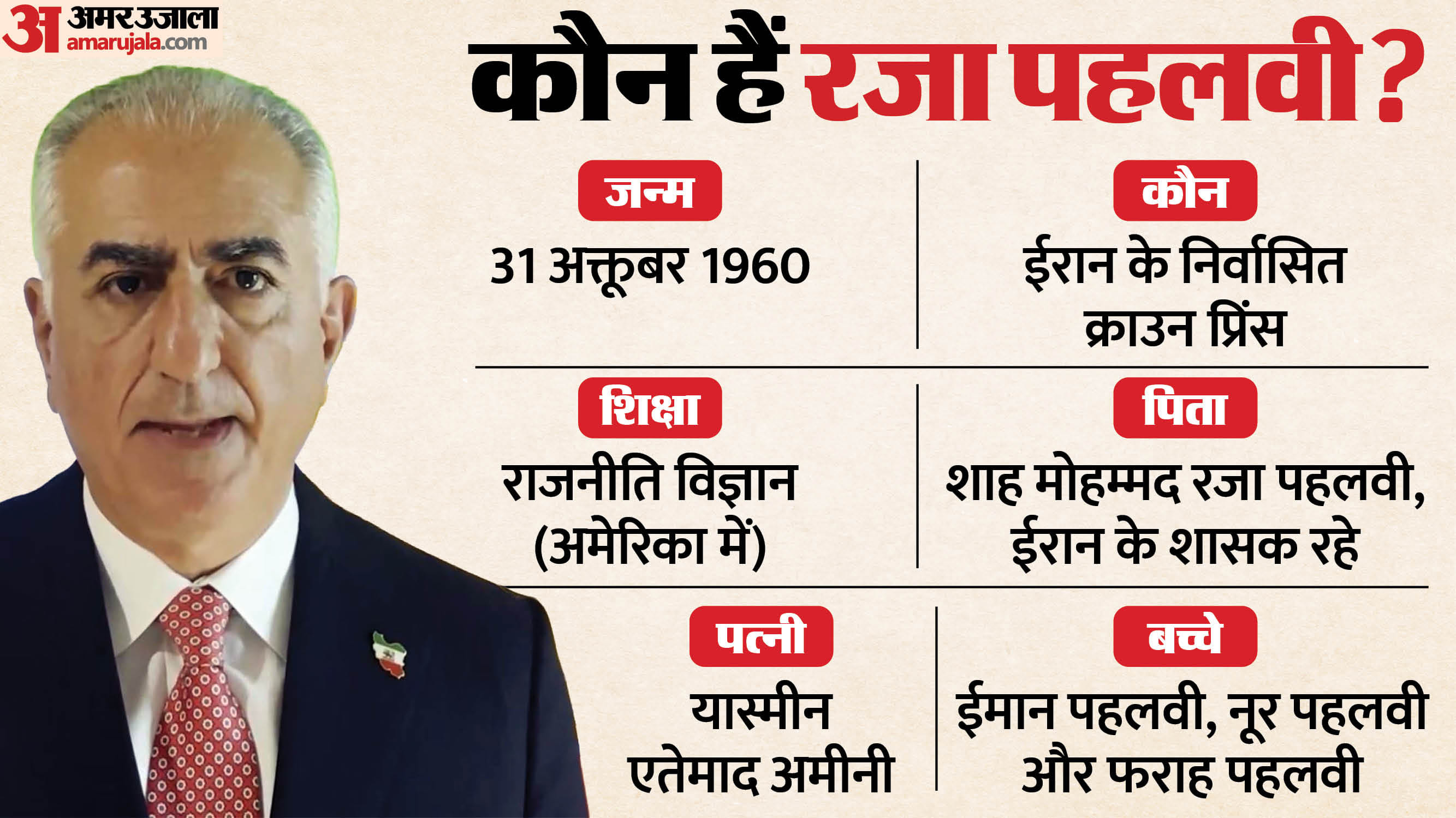 कौन?65 वर्षीय रजा ईरान के अंतिम शाह- मोहम्मद रजा पहलवी के सबसे बड़े बेटे और निर्वासित क्राउन प्रिंस यानी राजकुमार हैं। उनके दादा- रजा शाह पहलवी ने पहलवी राजवंश की स्थापना की थी। हालांकि, 1979 की इस्लामिक क्रांति के दौरान उनके पिता को सत्ता से हटा दिया गया और उनका परिवार निर्वासन में चला गया। पहलवी राजवंश की जगह ईरान में धर्मगुरु के सत्ता संभालने की रिवायत शुरू हुई। अयोतुल्ला खोमैनी ईरान के सुप्रीम लीडर बने।