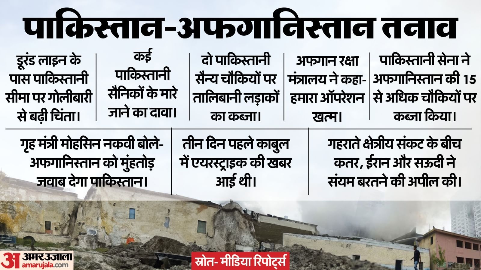 पाकिस्तान और अफगानिस्तान की सेनाओं के बीच सीमा पर कई इलाकों में लड़ाई चल रही है। इससे दोनों देशों के बीच संघर्ष बढ़ सकता है। खैबर पख्तूनख्वा के कुर्रम जिले में पाकिस्तान और अफगानिस्तान की सीमा पर मंगलवार रात पाक सुरक्षा बलों और अफगान तालिबान के बीच फिर से तीव्र संघर्ष हुआ। पाकिस्तान के अनुसार, अफगान तालिबान और फितना अल-खवारिज ने कुर्रम में बिना उकसावे के फायरिंग की। पाकिस्तानी सेना ने पूरी ताकत के साथ जवाबी कार्रवाई की।