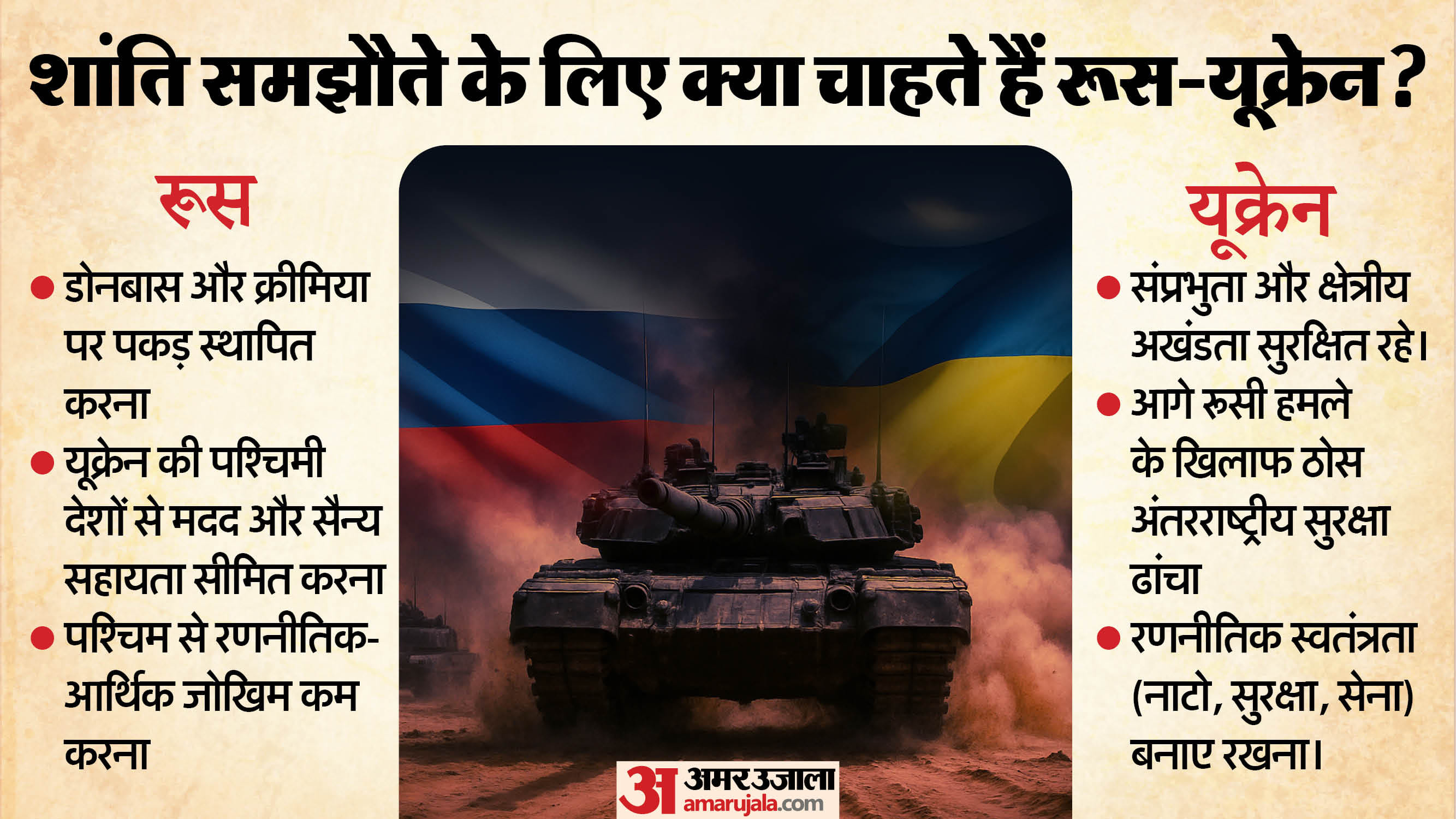 रूस शांति समझौते के लिए मुख्य रूप से क्षेत्रीय नियंत्रण, सुरक्षा गारंटी और यूक्रेन की सैन्य/रणनीतिक सीमाओं पर जोर देता है।क्या हैं रूस की मांग?