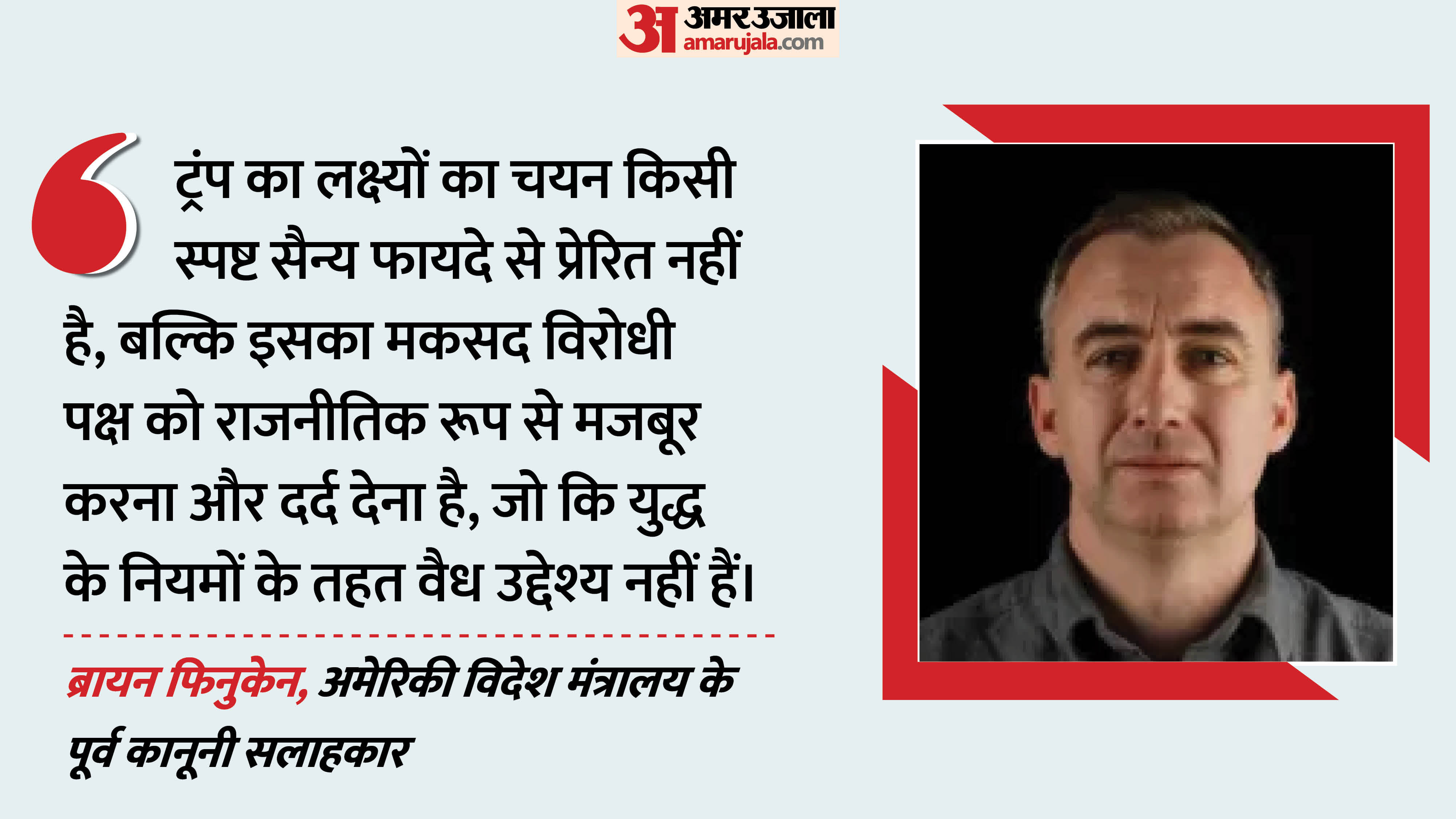 वहीं, अमेरिकी सेना के जेएजी कोर की पूर्व वकील मार्गरेट डोनोवन के मुताबिक, पहले कई सैन्य वकील नागरिक बुनियादी ढांचे पर हमले को युद्ध अपराध कहने से हिचकिचाते थे, क्योंकि कुछ विशेष परिस्थितियों में यह वैध हो सकता है। लेकिन ट्रंप की हालिया धमकियों ने उनकी राय बदल दी है। डोनोवन के अनुसार, ट्रंप की धमकियां सीधे तौर पर खतरा हैं, क्योंकि यह नागरिकों के लिए विनाशकारी हो सकता है।