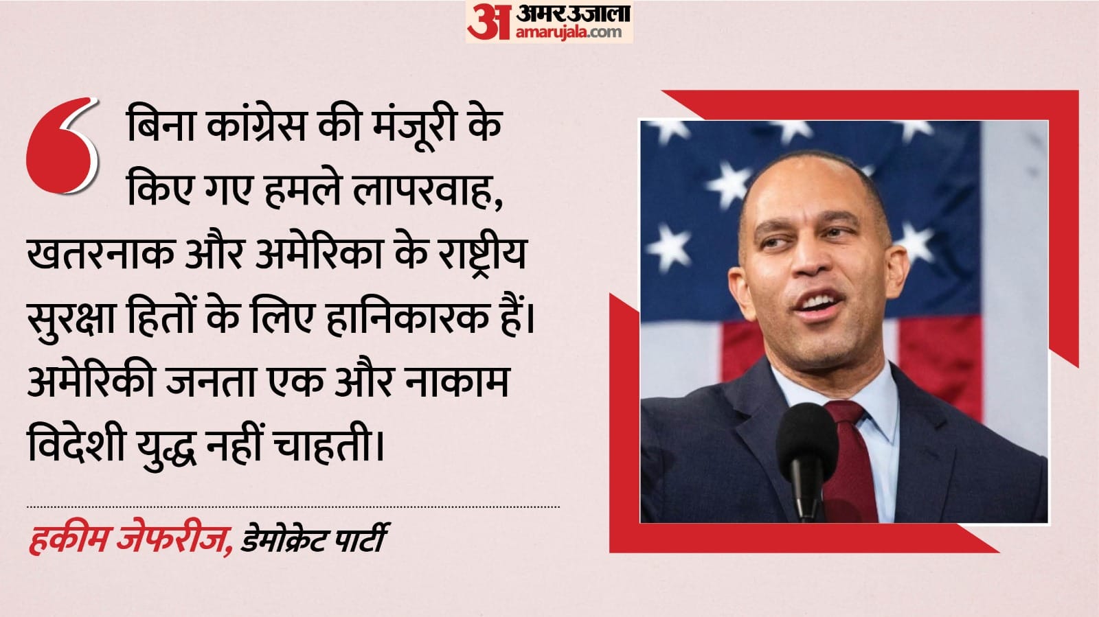 अमेरिकी हाउस ऑफ रिप्रेजेंटेटिव्स में डेमोक्रेट पार्टी के नेता हकीम जेफरीज के मुताबिक, उनकी पार्टी के साथ कई रिपब्लिकन (ट्रंप की पार्टी के सांसद) एक द्विदलीय प्रस्ताव लाने वाले थे। इस प्रस्ताव के तहत कांग्रेस की मंजूरी के बिना ईरान पर किसी भी अमेरिकी हमले को रोकने की तैयारी की गई थी। इसे 'वॉर पॉवर्स रेजोल्यूशन' नाम दिया गया और इस पर मतदान की तैयारी भी थी। जेफरीज ने बिना मंजूरी के हमले को लापरवाह और अमेरिका की राष्ट्रीय सुरक्षा के लिए खतरनाक बताया था।