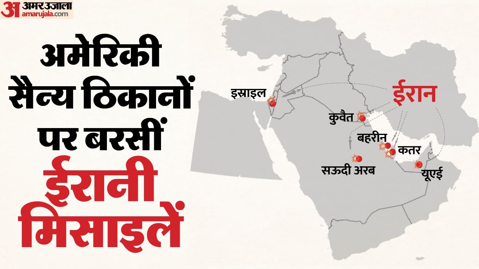 कतर, जो एक प्रमुख अमेरिकी एयरबेस की मेजबानी करता है, पर ताबड़तोड़ बैलिस्टिक मिसाइलें दागी गईं, जिन्हें हवा में ही रोक दिया गया। इस हमले में 16 लोग घायल हुए।