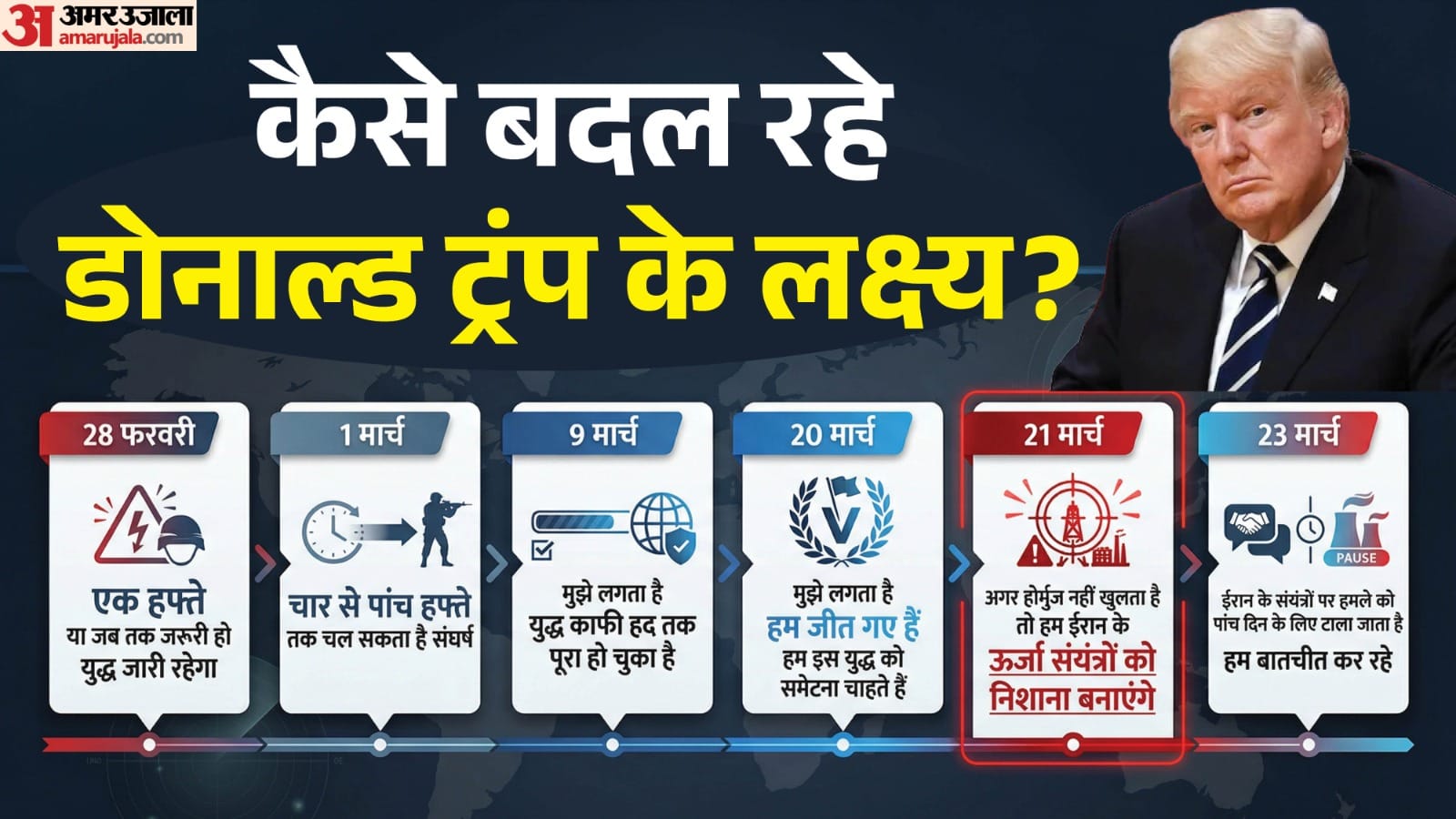 अमेरिका-इस्राइल और ईरान के बीच बीते चार हफ्तों से जारी युद्ध में कई अहम घटनाक्रम हुए हैं। जहां ईरान में शीर्ष नेतृत्व को अमेरिका और इस्राइल ने संयुक्त अभियानों में मार गिराया, तो वहीं ईरान ने होर्मुज जलडमरूमध्य बंद कर के दुनियाभर की ऊर्जा सप्लाई को बाधित कर दिया है। इस बीच अमेरिका के राष्ट्रपति डोनाल्ड ट्रंप लगातार हर हफ्ते ईरान में अपने लक्ष्य बदलते रहे हैं और अब उन्होंने एक बार फिर ईरान से बातचीत के जरिए युद्ध रोकने की बात कही है।