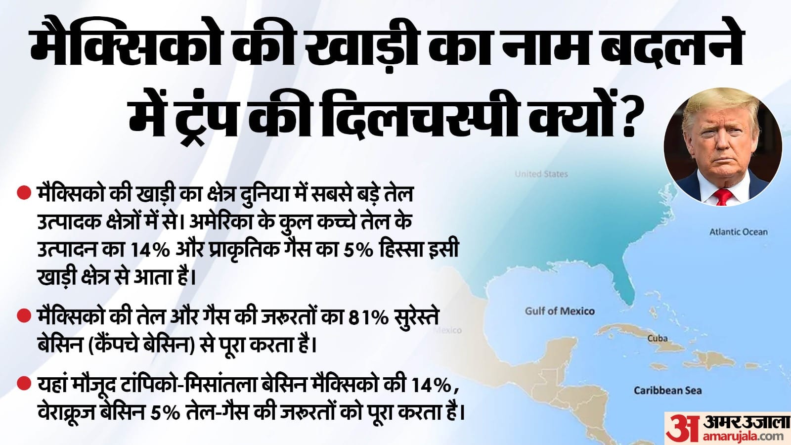 - विधेयक के प्रावधानों के मुताबिक, अगर यह पारित हो जाता है तो अमेरिका के कानूनों, मैप्स, दस्तावेजों और अन्य सभी रिकॉर्ड्स में मैक्सिको की खाड़ी का नाम हटा दिया जाएगा और इसकी जगह पूरे क्षेत्र के लिए अमेरिका की खाड़ी का नाम इस्तेमाल होगा।